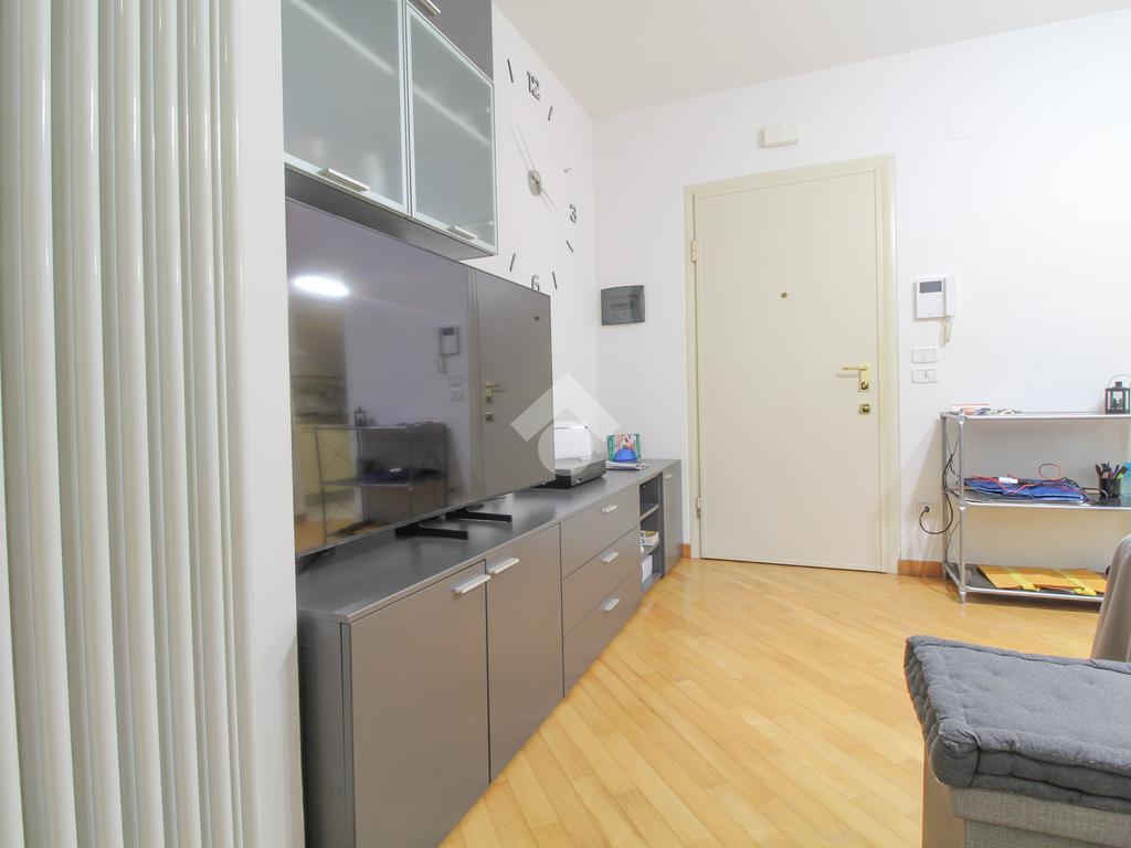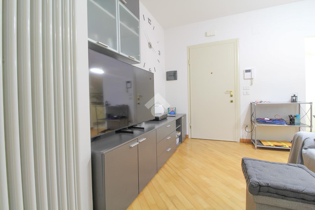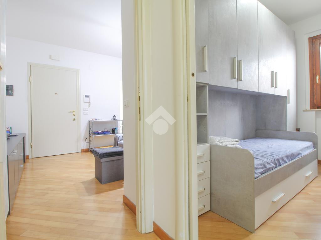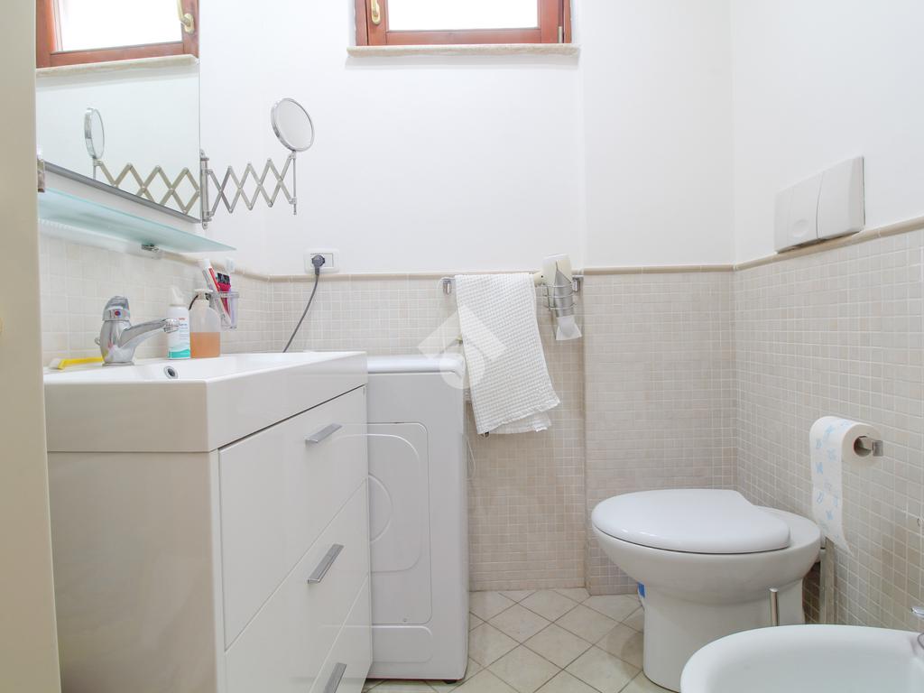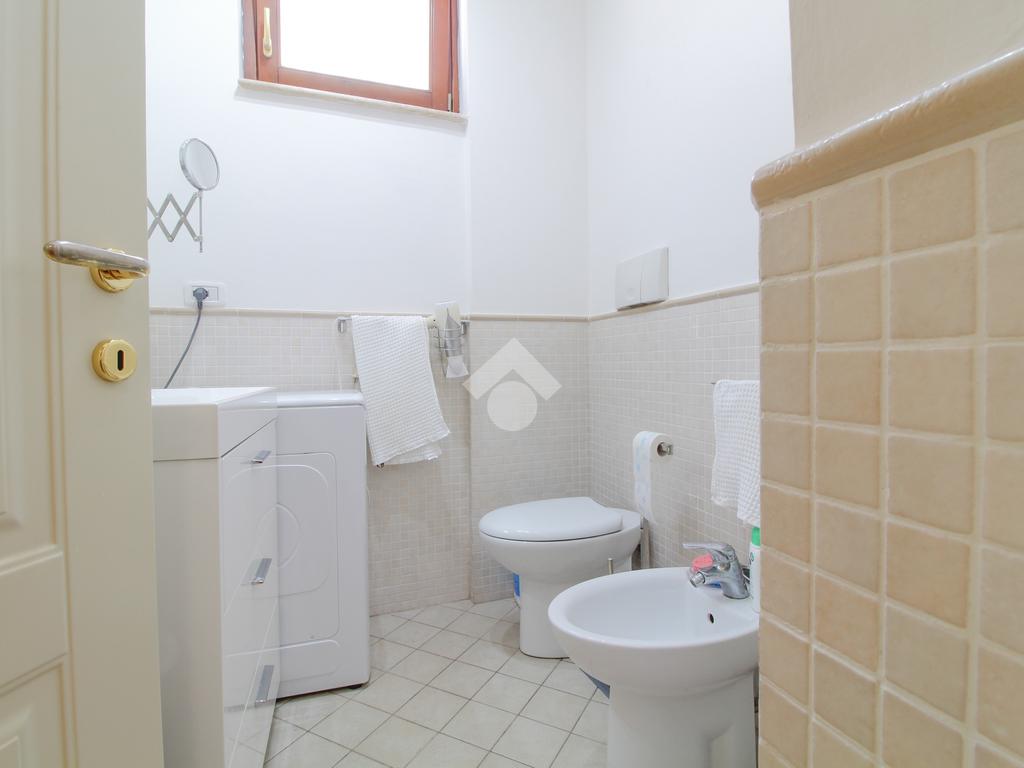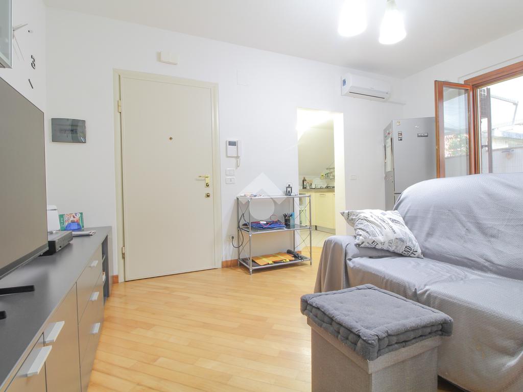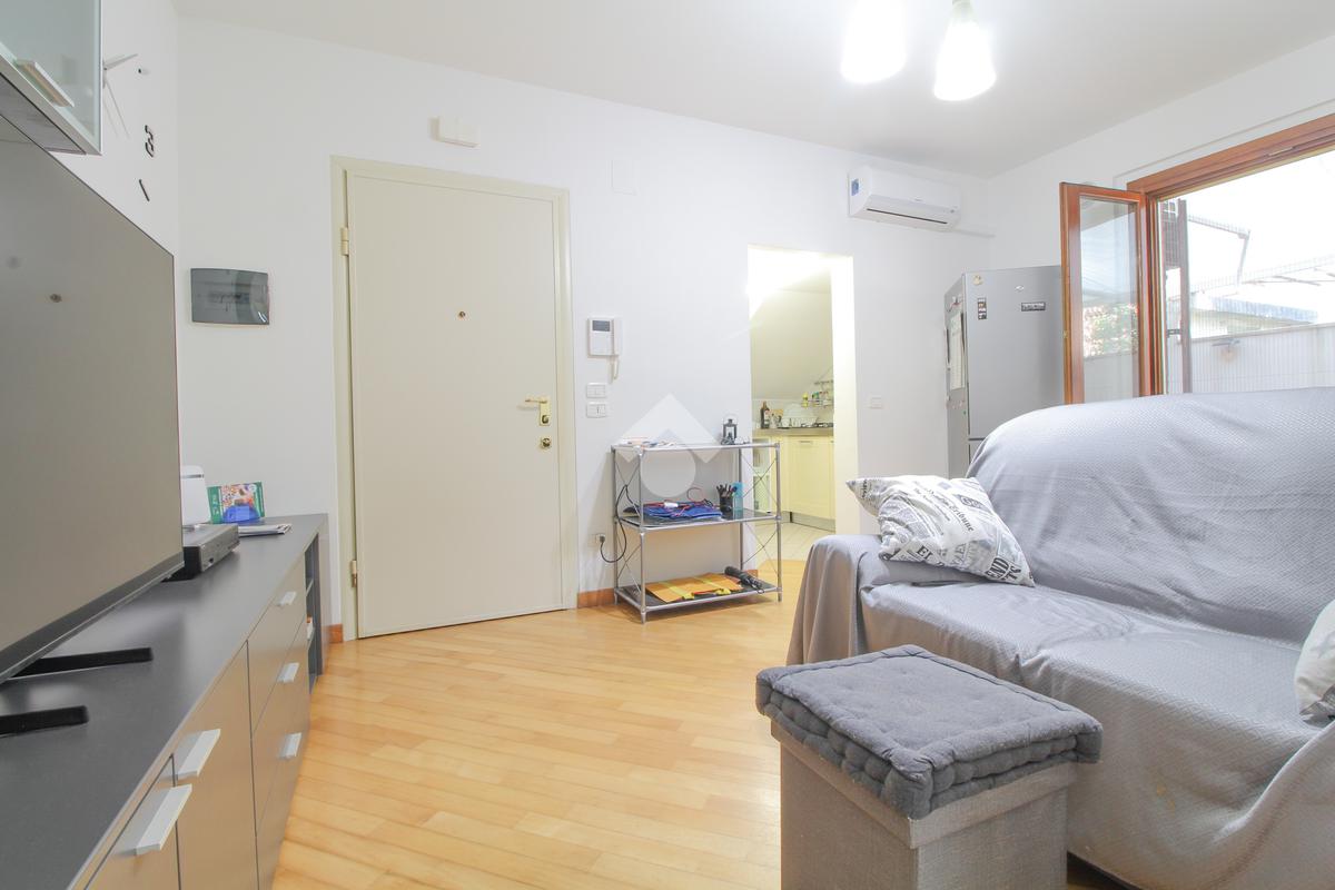 Al piano terra disponiamo di grazioso trilocale composto di: ingresso, soggiorno, cucinotto, camera matrimoniale, studio/cameretta, bagno con finestra e corte pavimentata di 20 mq ca. L'appartamento internamente si presenta in ottimo stato, con pavimentazione in parquet, infissi in legno con doppio vetro, portone blindato di ingresso, impiantistica a norma, climatizzazione, rivestimenti del bagno in ceramica; complessivamente l'appartamento è una soluzione abitativa funzionale e accogliente, pronta per essere abitata senza necessità di interventi se non una ordinaria ritinteggiata delle mura.